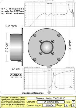 high freq. driver: TW025A20, alum. 1'' dome by Audax,