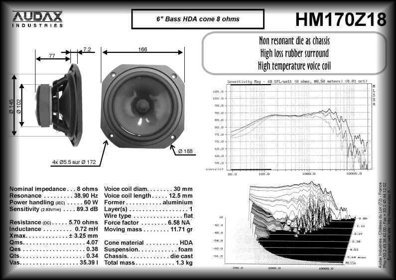 bass-mid driver: HM170Z18, aerogel 6.5'' cone by Audax,